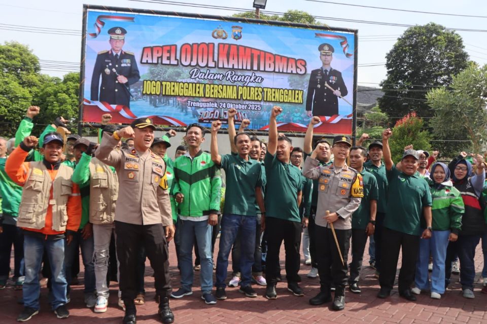 Polres Trenggalek – Ratusan pengemudi ojek online atau yang lebih dikenal dengan sebutan Ojol kompak mengikuti apel bersama di halaman Mapolres Trenggalek. Para pengemudi Ojol menyatakan siap mendukung dan ikut menjaga kondusivitas Kamtibmas di Kabupaten Trenggalek serta aktif menyebarkan pesan positif di jalanan. Jumat, (24/10).
