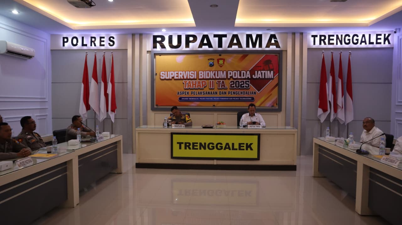 Polres Trenggalek – Kepolisian Resor Trenggalek menerima kunjungan dari Polda Jatim. Tim yang merupakan anggota dari Bidkum Polda Jatim ini untuk menggelar supervisi tahap II TA. 2025 aspek pelaksanaan dan pengendalian. Senin, (24/11).