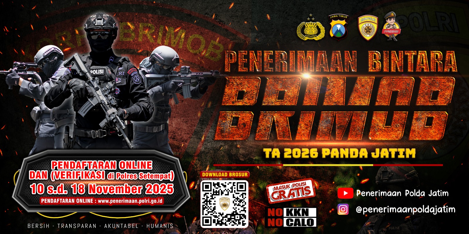 Polres Trenggalek – Kepolisian Negara Republik Indonesia membuka penerimaan Bintara Brimob Polri tahun anggaran 2026. Hal ini tercantum dalam pengumuman nomor Peng/38/XI/DIK.2.1/2025 tertanggal 7 November 2025.