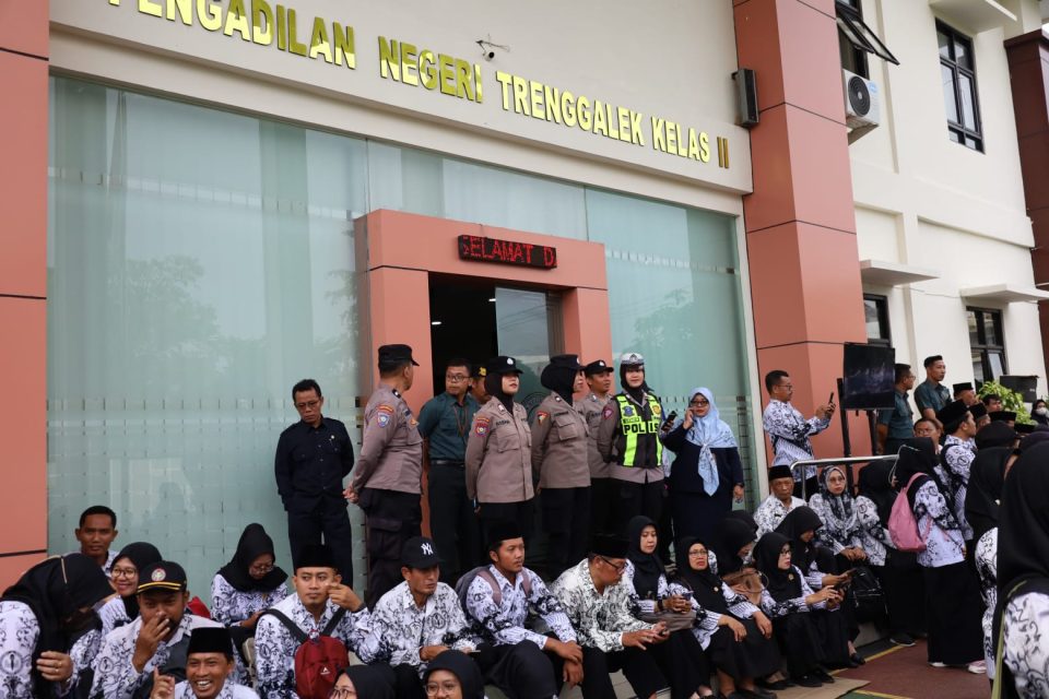 Polres Trenggalek – Sejumlah elemen masyarakat yang tergabung dalam PGRI dan organisasi kemahasiswaan mendatangi kantor Pengadilan Negeri, Kabupaten Trenggalek. Aksi ini digelar sebagai bentuk solidaritas dan dukungan moril dalam kasus penganiayaan beberapa waktu yang lalu. Selasa, (3/2).