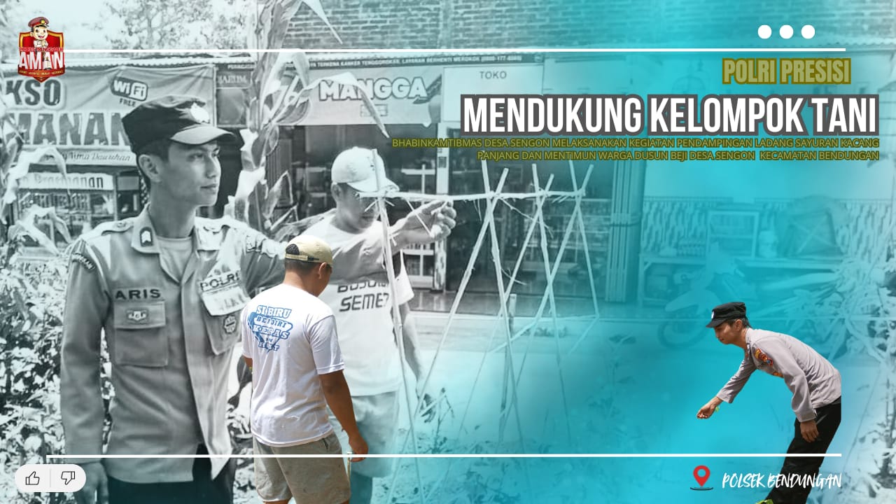 Dan kali ini Bhabinkamtibmas Desa Sengon Polsek Bendungan Polres Trenggalek melaksanakan pendampingan kepada kelompok tani Kacang Panjang dan Mentimun Desa Sengon Kecamatan Bendungan dalam rangka mendukung Ketahanan Pangan.