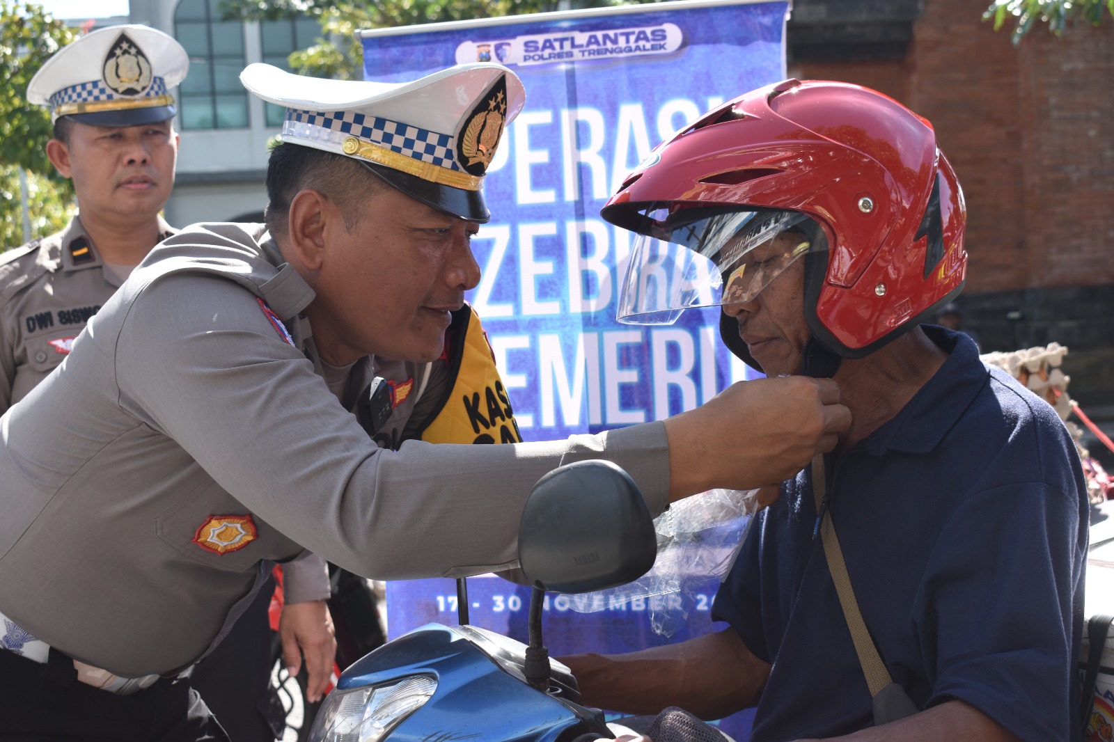 Kapolres Trenggalek AKBP Ridwan Maliki, S.H., S.I.K., M.I.K. melalui Wakapolres Kompol Herlinarto, S.E., M.M. yang kebetulan turut hadir dalam kegiatan tersebut menuturkan, dalam Operasi Zebra Semeru 2025 terdapat beberapa sasaran prioritas. Salah satu diantaranya adalah penggunaan helm SNI.