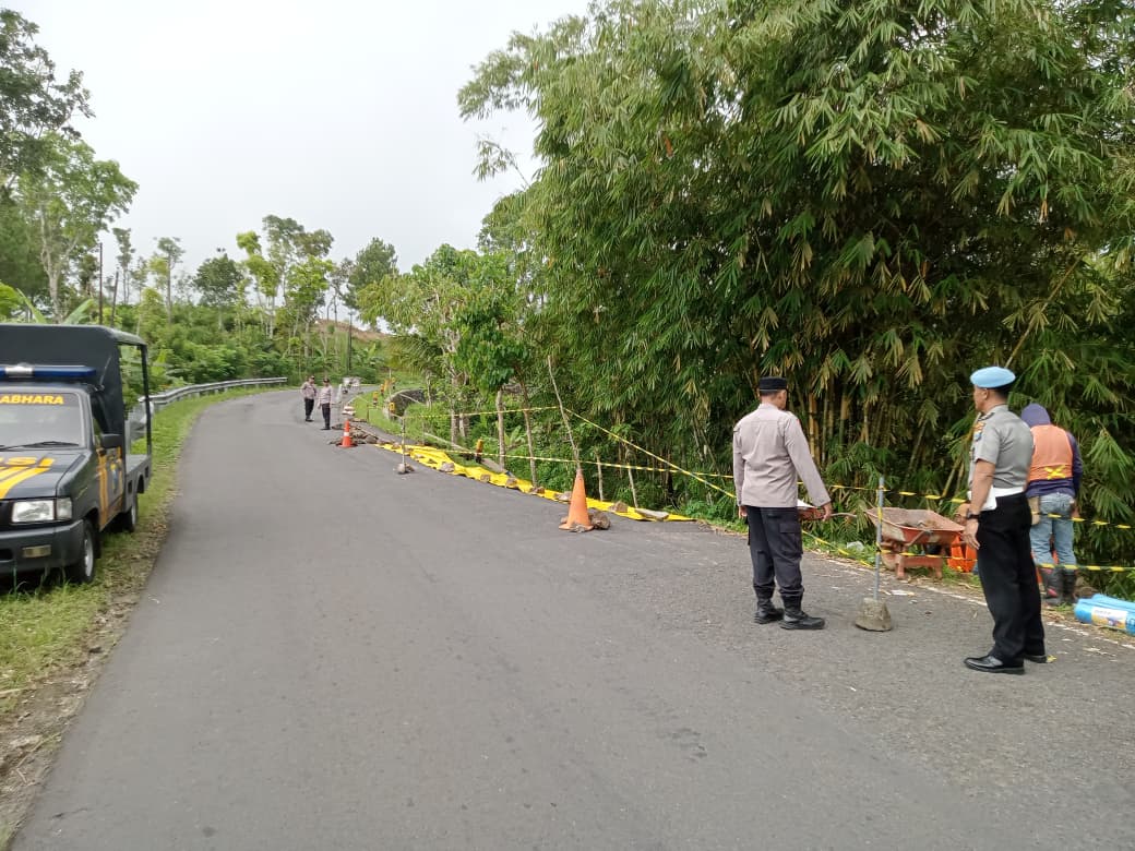 Kondisi tersebut tentunya dapat membahayakan para pengguna jalan terutama saat malam hari dengan kondisi penerangan yang minim. Oleh sebab itu, pihaknya bersama dengan stakholder terkait telah melakukan sejumlah langkah cepat diantaranya adalah memasang terpal penutup pada badan jalan yang longsor serta memasang tanda batas jalan yang mudah dilihat oleh pengendara.