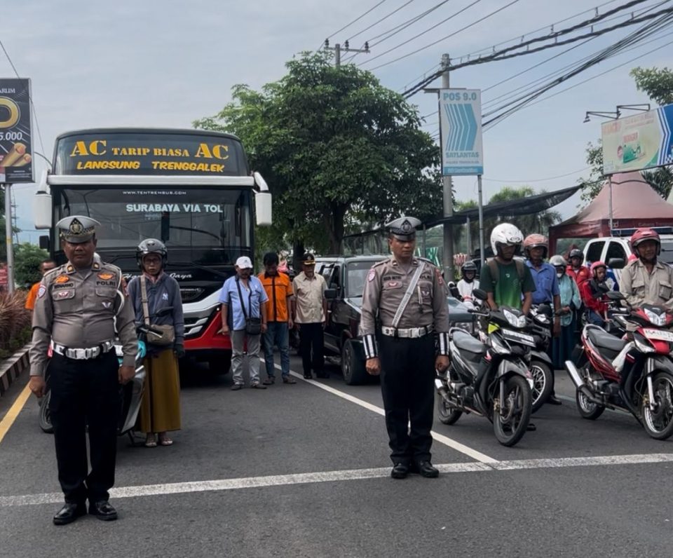 Kapolres Trenggalek AKBP Ridwan Maliki, S.H., S.I.K., M.I.K., melalui Kasatlantas AKP Sony Suhartanto, S.H., M.H. mnerangkan, kegiatan mengheningkan cipta dilakukan tepat pada pukul 08.15 Wib.