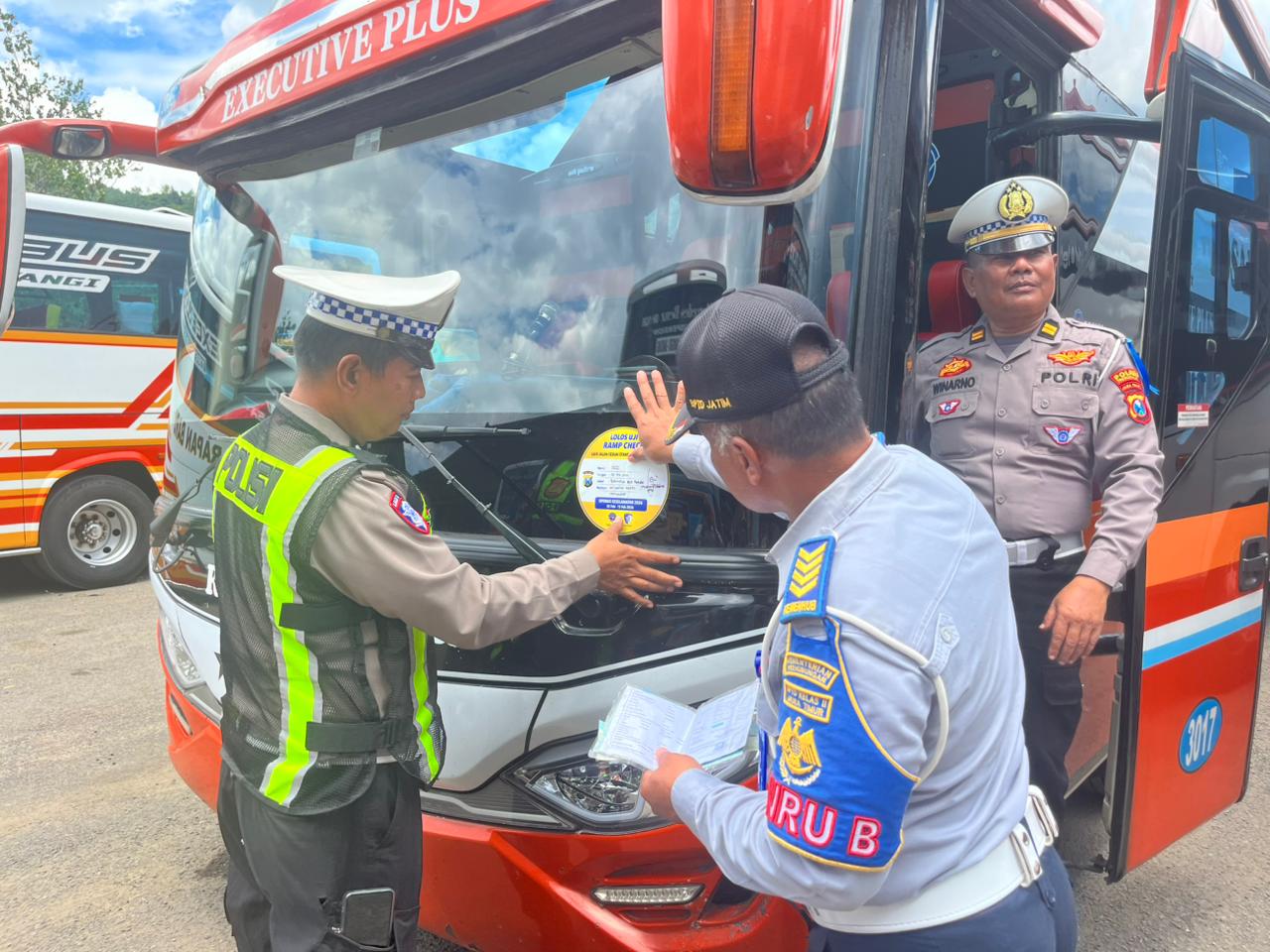 “Pengecekan dilakukan mulai dari mesin, rem, lampu, spion, hingga peralatan darurat dan P3K. Semua harus dalam kondisi yang prima dan siap pakai. Bagi yang sudah tertib dan lengkap kita tempel stiker.” Jelasnya.