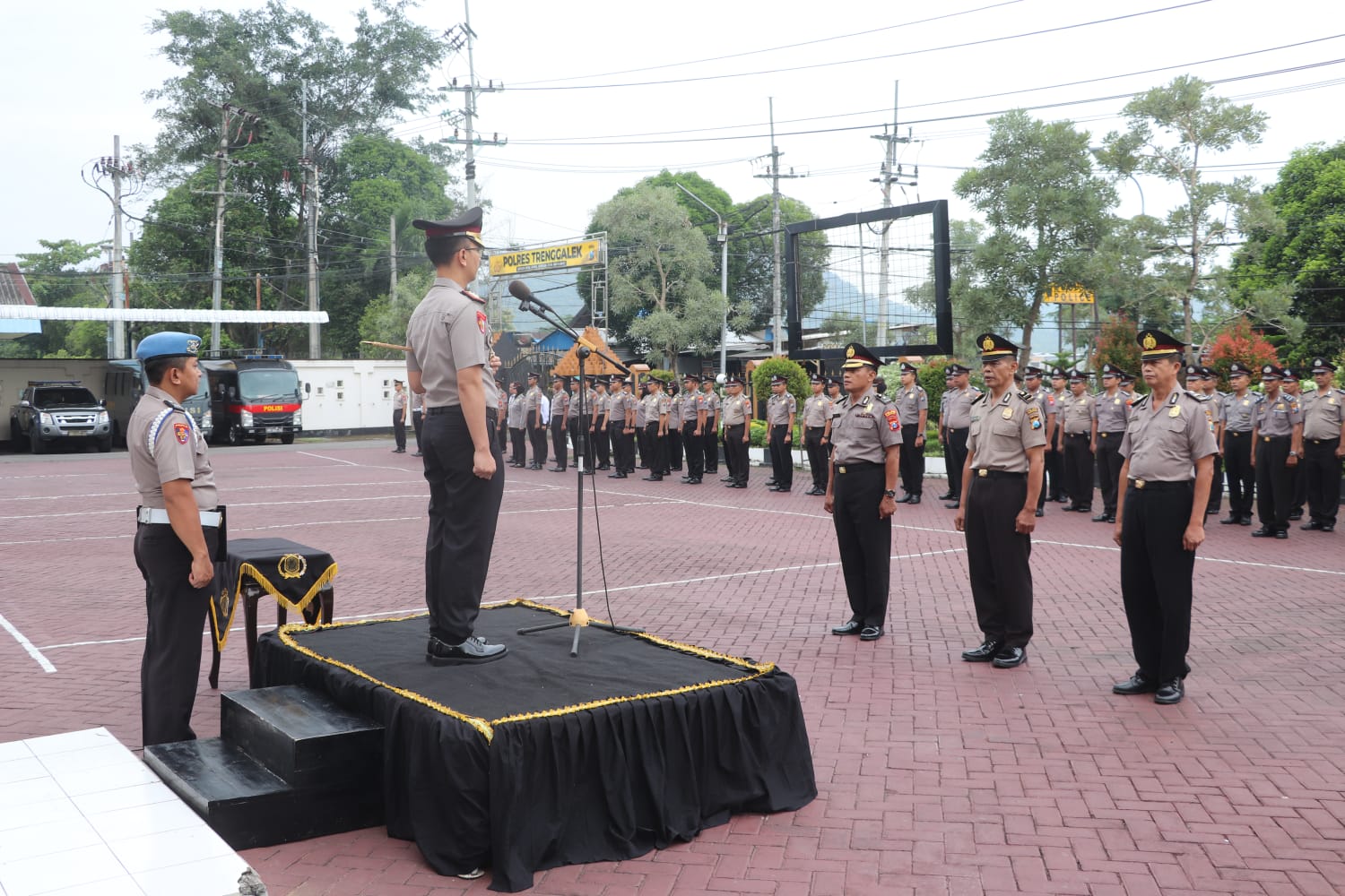 Prosesi korp rapot kenaikan pangkat di gelar di halaman Mapolres yang dipimin langsung oleh Kapolres Trenggalek AKBP Ridwan Maliki, S.H., S.I.K., M.I.K. dan diikuti oleh seluruh pejabat utama, Kapolsek jajaran dan segenap anggota. Senin, (2/3).