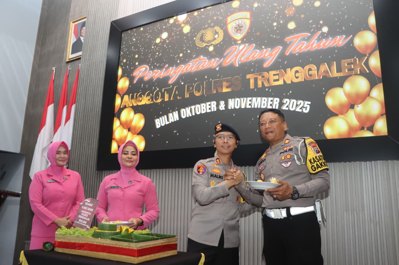 Polres Trenggalek – Kapolres satu ini punya cara yang unik dalam menjaga soliditas anggotanya. Setiap bulan, AKBP Ridwan Maliki, S.H., S.I.K., M.I.K. rutin menggelar tasyakuran ulang tahun bagi anggotanya. Meski sederhana, namun selalu membawa suasana keakraban dan kebahagiaan tersendiri.