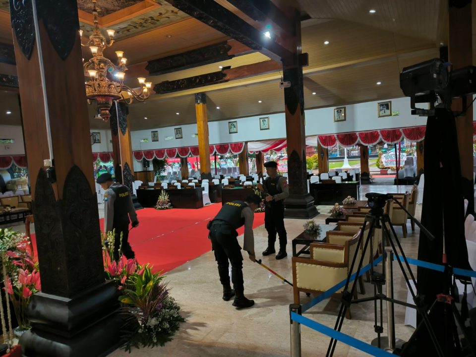 Kapolres Trenggalek AKBP Indra Ranu Dikarta, S.I.K., M.Si. melalui Sterilisasi ini dilakukan untuk memastikan tidak ada barang-barang berbahaya yang dapat mengganggu jalannya pelantikan anggota DPRD Kabupaten Trenggalek periode 2024-2029. Senin, (26/8).