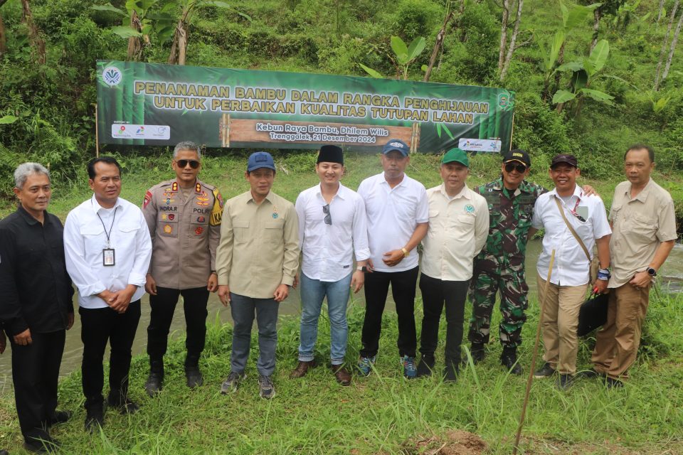 Kunjungan Menteri LH/BPLH Dr. Hanif Faisol Nurofiq, S.Hut., M.P. ini dalam rangka penanaman bambu dan penghijauan untuk perbaikan kualitas tutupan lahan yang berada di Kawasan Arboretum Bambu Dillem Wilis, Desa Dompyong, Kecamatan Bendungan, Kabupaten Trenggalek.