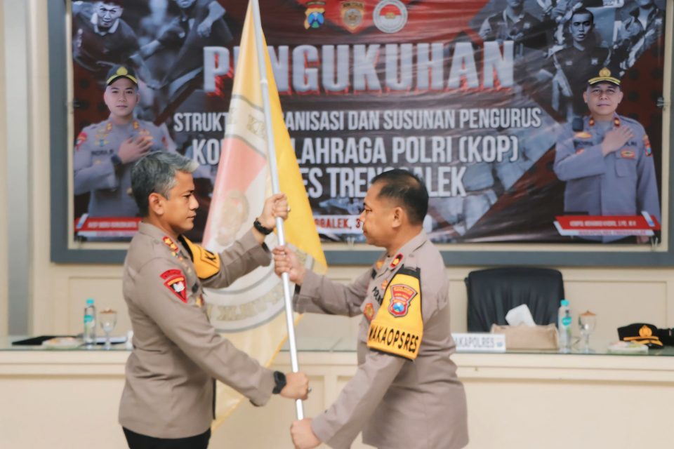 Prosesi pengukuhan pengurus KOP dilakukan oleh Kapolres Trenggalek AKBP Indra Rabu Dikarta, S.I.K., M.Si. di Rupatama Mapolres yang ditandai dengan penyerahan bendera Komite Olahraga Polri kepada Wakapolres Kompol Mohamad Khoiril, S.Pd., M.H. selaku Ketua Umum KOP Polres Trenggalek. Rabu, (31/7).