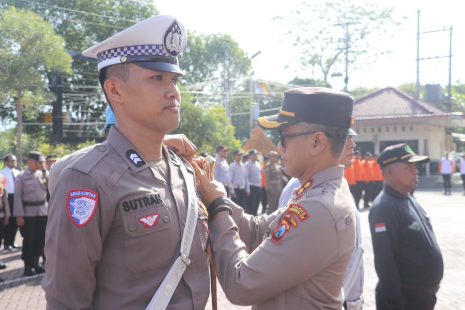 Dalam kesempatan tersebut, Kapolres Trenggalek AKBP Indra Ranu Dikarta, S.I.K., M.Si. yang bertindak sebagai pimpinan apel menyematkan pita operasi kepada sejumlah perwakilan dari TNI, Polri, Dishub dan Mitra Kamtibmas.