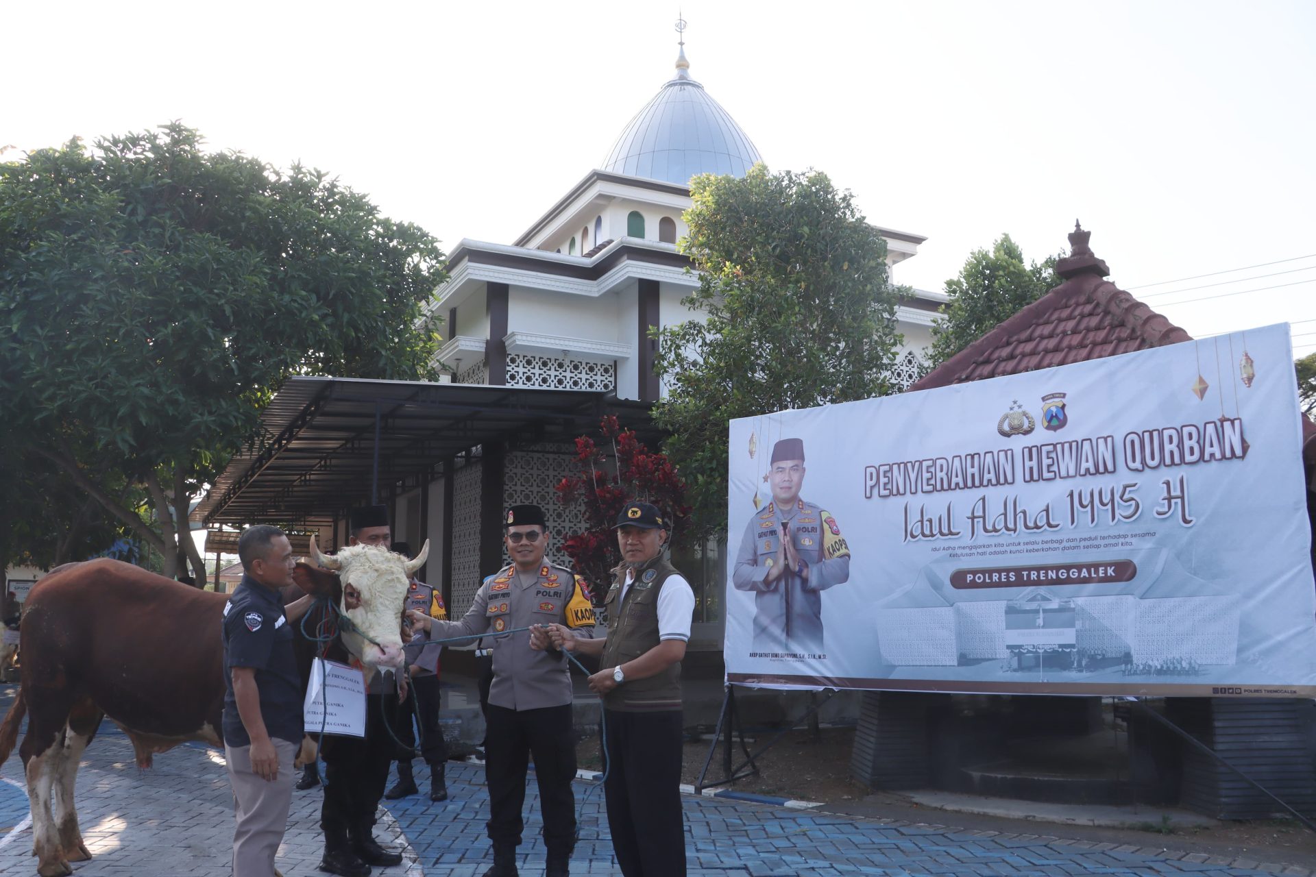 Polres Trenggalek – Kepolisian Resort Trenggalek menyerahkan puluhan hewan kurban kepada sejumlah organisasi masyarakat hingga takmir masjid. Penyerahan yang dilakukan di pelataran masjid Baitul Muttaqin area Mapolres Trenggalek tersebut dihadiri oleh sejumlah tokoh masyarakat berikut personel Polres Trenggalek. Minggu, (16/6).