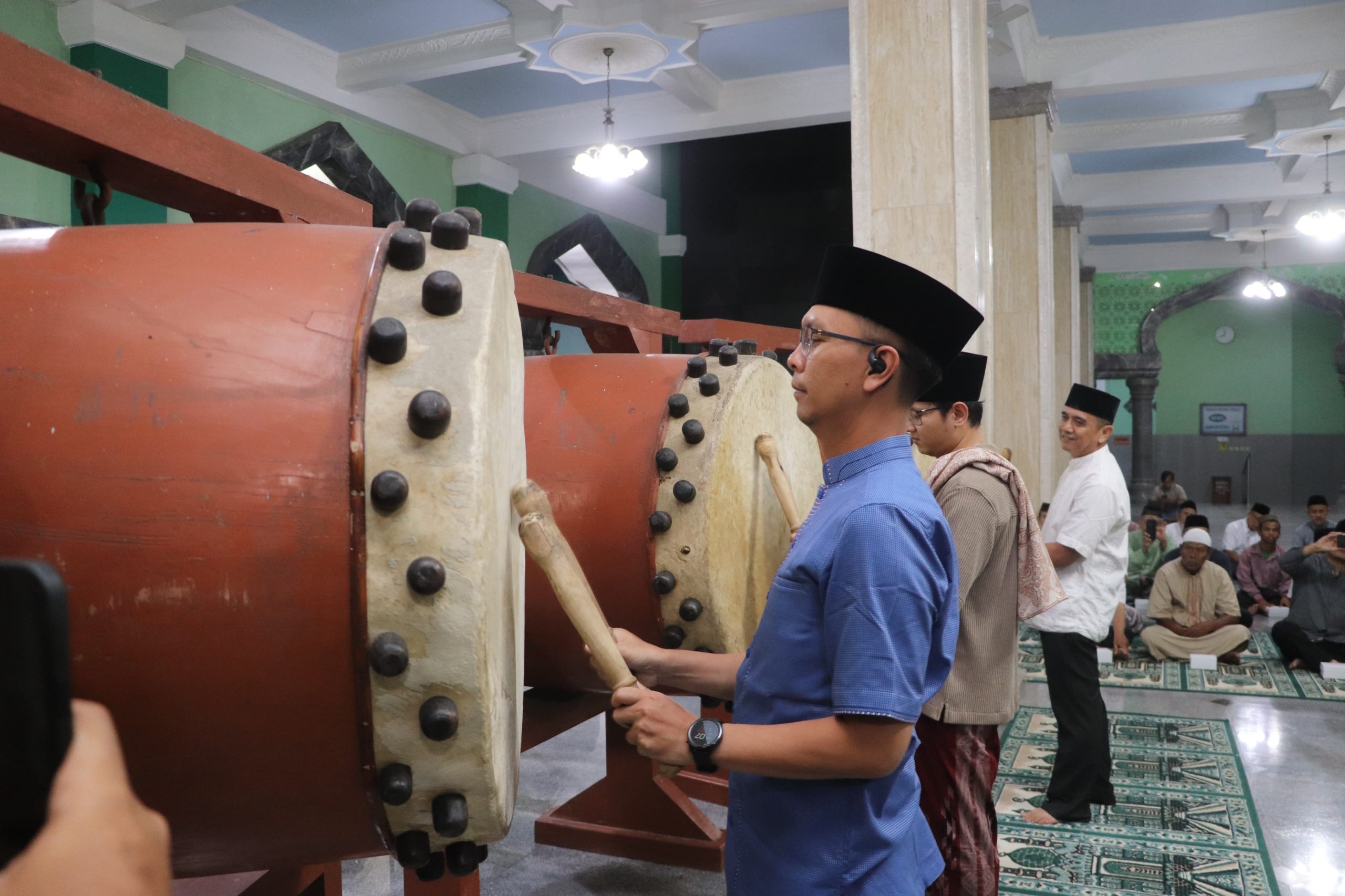 Polres Trenggalek – Kepala Kepolisian Resor Trenggalek AKBP Ridwan Maliki, S.H., S.I.K., M.I.K. bersama jajaran Forkopimda menabuh beduk malam takbir menyambut Hari Raya Idul Adha 1446 H/2025 di Masjid Agung Baiturrahman, Trenggalek. Kamis, (5/6).