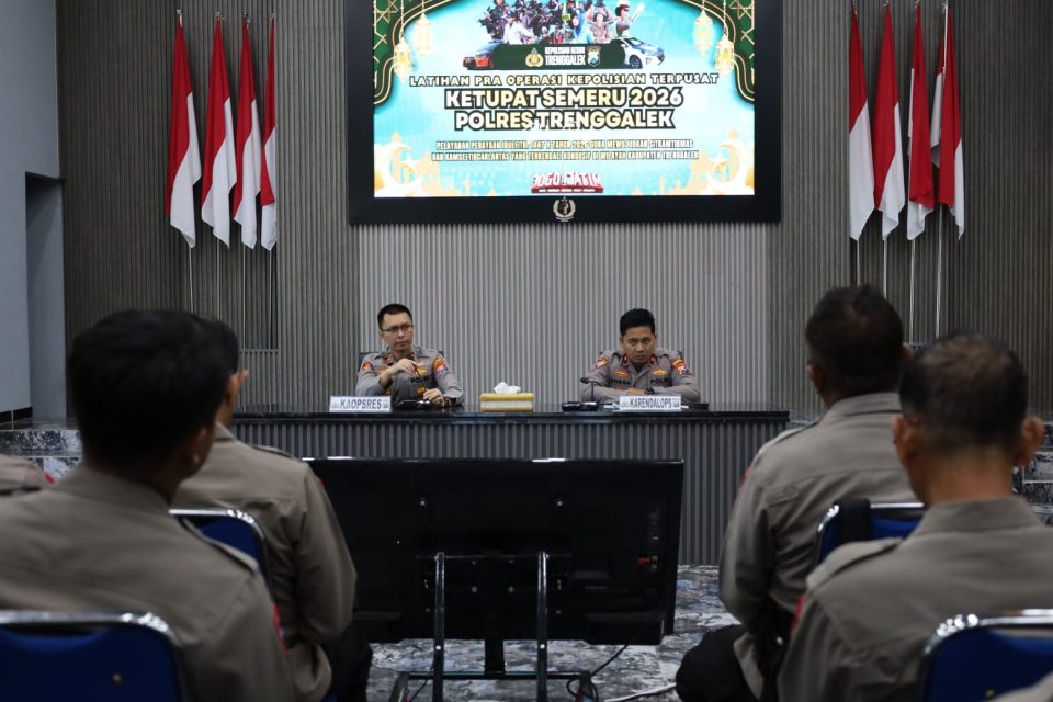 Sebagai bentuk kesiapan, Polres Trenggalek menggelar Latihan Pra Operasi (Latpraops) Ketupat Semeru 2026 di Aula Tatag Trawang Tungga Mapolres yang diikuti oleh segenap personel yang terlibat operasi. Kamis, (12/3).