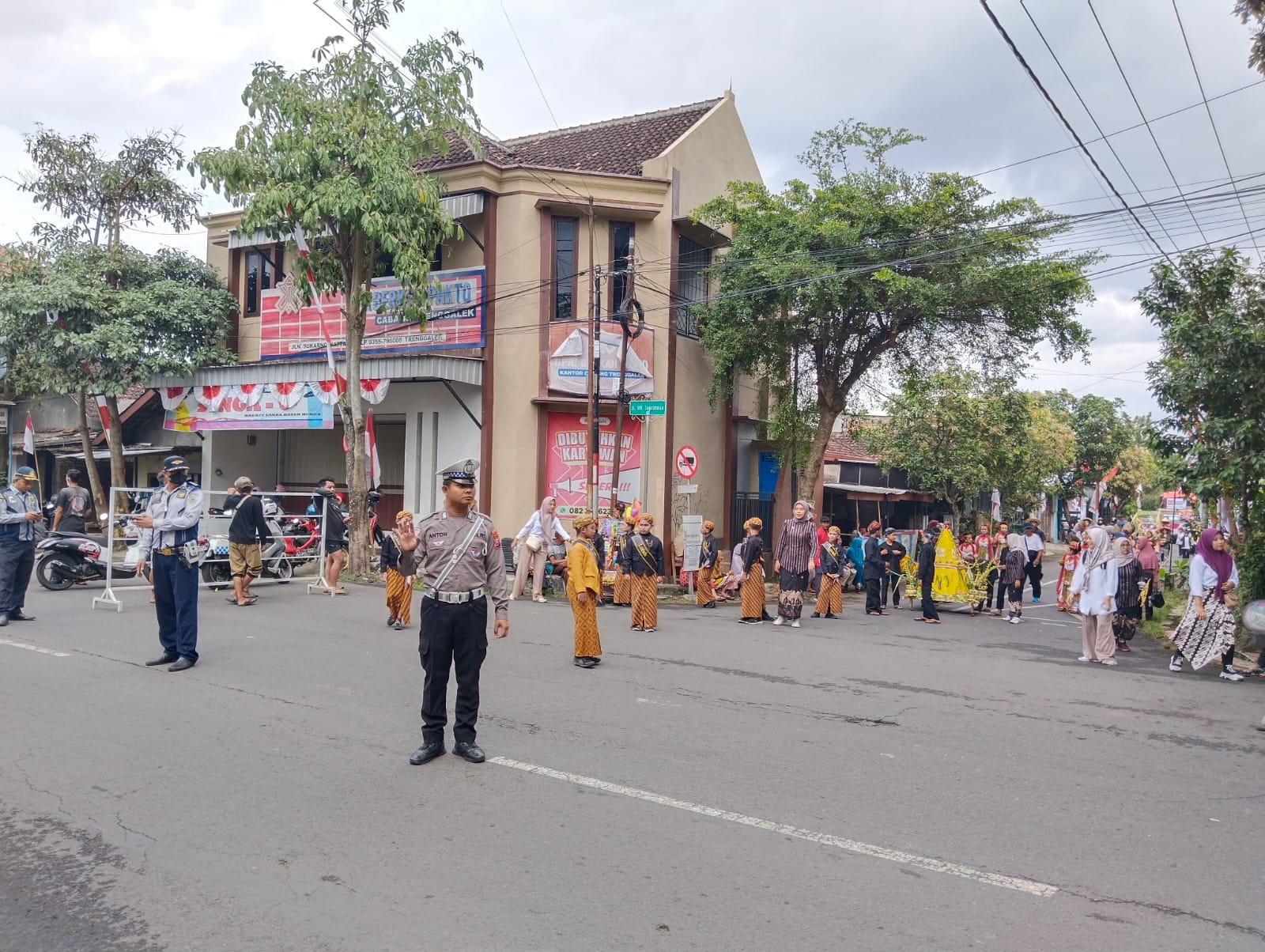 Pastikan Lancar, Polres Trenggalek Amankan Pawai Budaya Hari Kemerdekaan RI Tingkat SD/MI