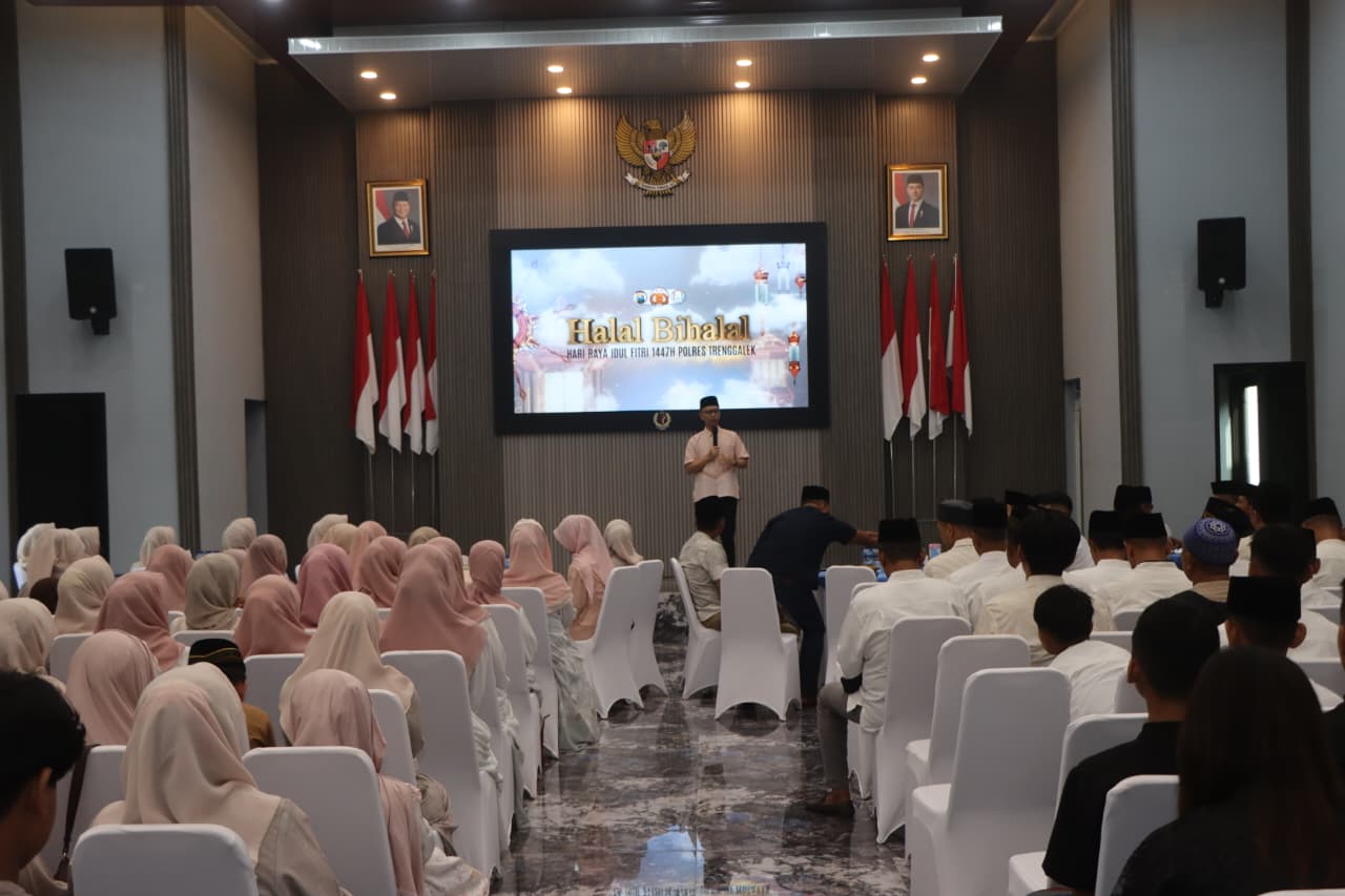 Kapolres Trenggalek AKBP Ridwan Maliki, S.H., S.I.K., M.I.K. menuturkan, halal bihalal bukan sekadar tradisi, tetapi menjadi momentum penting untuk memperkuat soliditas, meningkatkan kebersamaan, serta menumbuhkan semangat baru dalam pelaksanaan tugas sebagai anggota Polri.