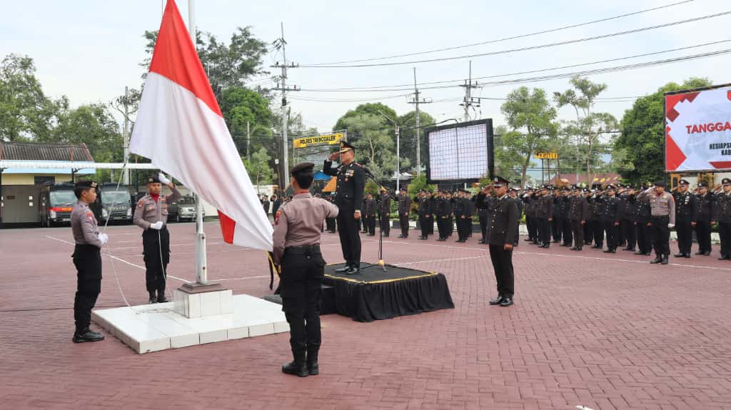 Polres Trenggalek – Kepolisian Resor Trenggalek menggelar upacara pengibaran bendera di halaman Mapolres Trenggalek. Upacara dalam rangka peringatan Hari Pahlawan ini diikuti oleh seluruh anggota Polres Trenggalek serta perwakilan dari Polsek jajaran. Senin, (10/11).