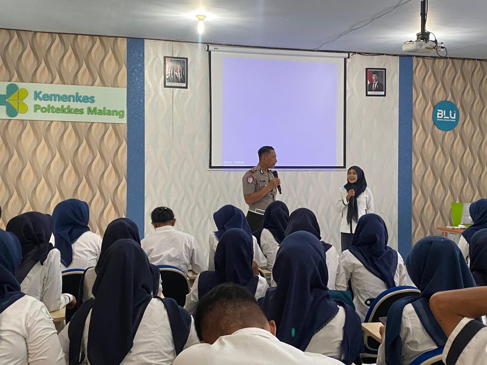 Seperti yang terlihat di kampus Polkesma Kampus V Trenggalek. Hari ini, sejumlah petugas kepolisian yang merupakan personel dari Satlantas Polres Trenggalek memberikan edukasi kepada para mahasiswa. Senin, (19/1).