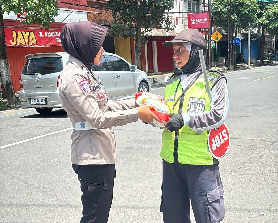 Di sela-sela kesibukannya dalam menjaga Kamtibmas yang kondusif, sejumlah petugas yang merupakan anggota Polisi Wanita (Polwan) Polres Trenggalek Nampak berkeliling di seputaran kota. Tak sekadar tangan kosong, para Srikandi yang juga anggota Satlantas Polres Trenggalek ini nampak membagikan Sembako. Sabtu, (22/3).