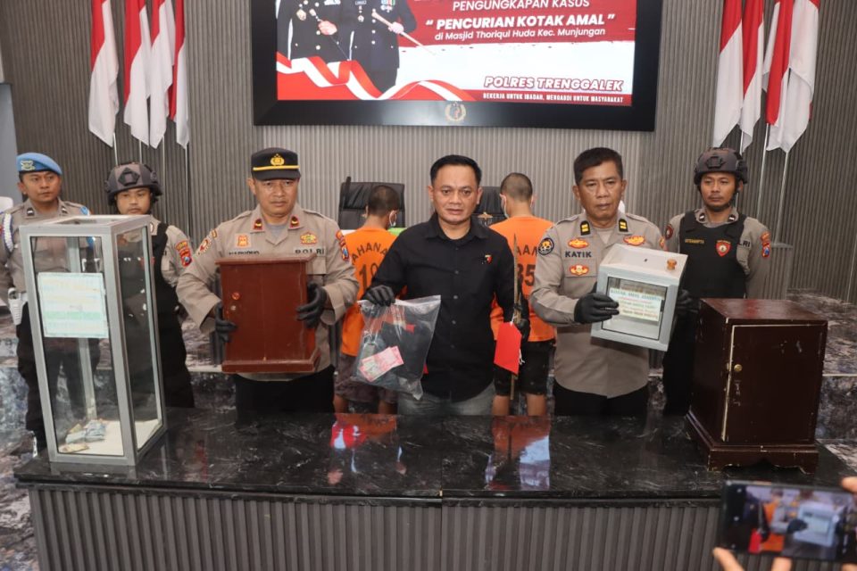 Polres Trenggalek – Beberapa waktu yang lalu, di Kabupaten Trenggalek sempat dihebohkan dengan kejadian pencurian kotal amal di beberapa masjid khususnya wilayah Kecamatan Munjungan. Menindak lanjuti hal tersebut, Polres Trenggalek bergerak cepat melakukan upaya kepolisian untuk mengungkap pelaku pencurian tersebut.