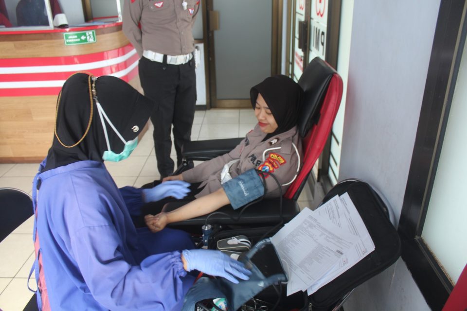 Polres Trenggalek – Puluhan polisi lalu lintas nampak memadati kantor Palang Merah Indonesia (PMI). Kehadiran Polisi yang dikenal dengan sebutan Polantas ini untuk mengikuti kegiatan donor darah. Jumat, (6/9).
