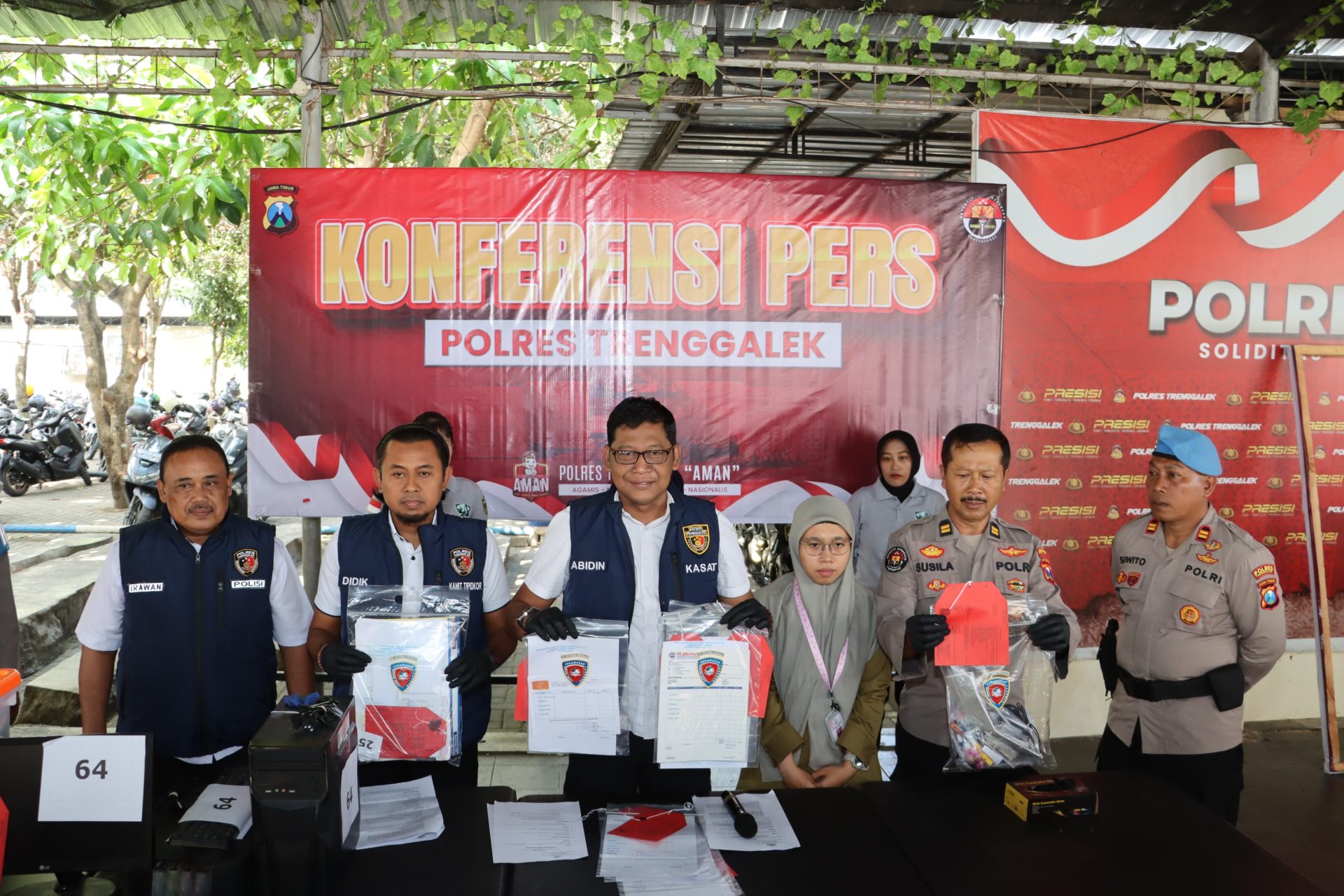 Dalam konferensi pers yang digelar di Taman Batu area Mapolres Trenggalek siang ini, Kapolres Trenggalek AKBP Indra Ranu Dikarta, S.I.K., M.Si. melalui Kasatreskrim AKP Zainul Abidin, S.H. menegaskan, dalam kasus tersebut, unit Tipikor Satreskrim telah mengamankan satu orang tersangka. Senin, (29/7).