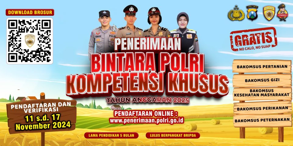 “Pendaftaran akan dibuka mulai tanggal 11 sampai dengan 17 November 2024. Karena waktu sangat terbatas, bagi yang berminat dan sudah memenuhi persyaratan, silahkan mendaftarkan diri melalui portal https://penerimaan.polri.go.id/.” Pungkasnya