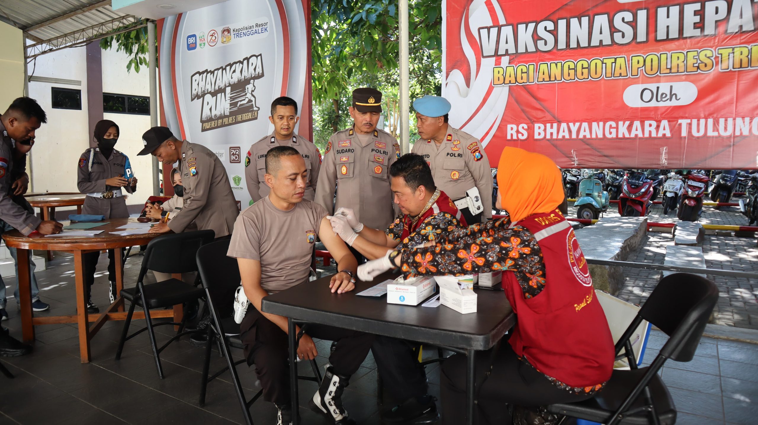 Polres Trenggalek – Kepolisian Resor Trenggalek kembali menggelar Vaksinasi Hepatitis B bagi anggotanya. Vaksinasi ini adalah kali ke tiga dan merupakan tindak lanjut dari vaksinasi yang telah digelar sebelumnya pada bulan Juli 2024 yang lalu. Kamis, (19/9).
