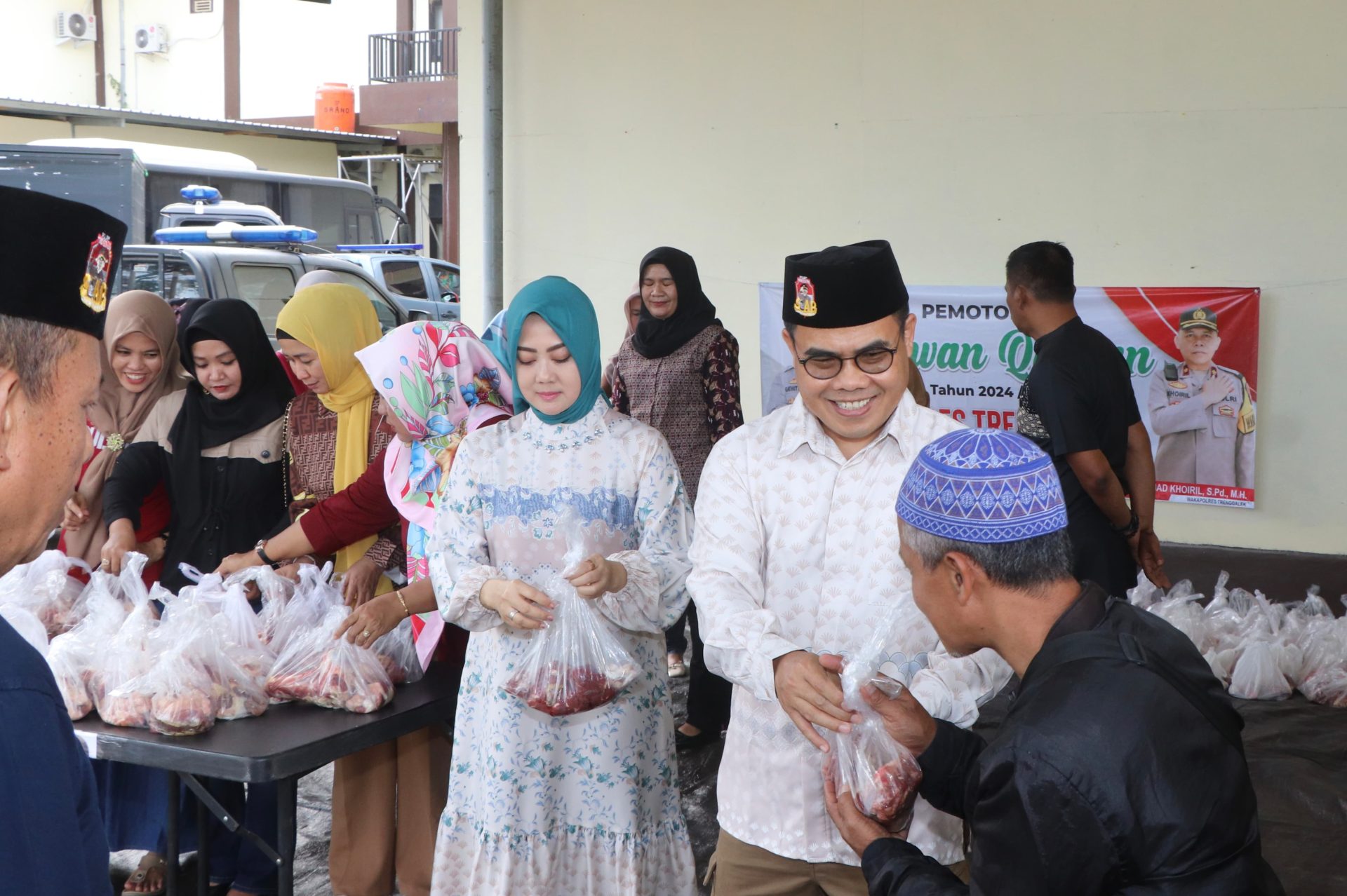 Polres Trenggalek – Menyambut hari raya Idul Adha 1445 H, Kepolisian Resort Trenggalek menyalurkan ratusan paket daging kurban kepada masyarakat tak mampu di seputaran kota Trenggalek. Senin, (17/6).