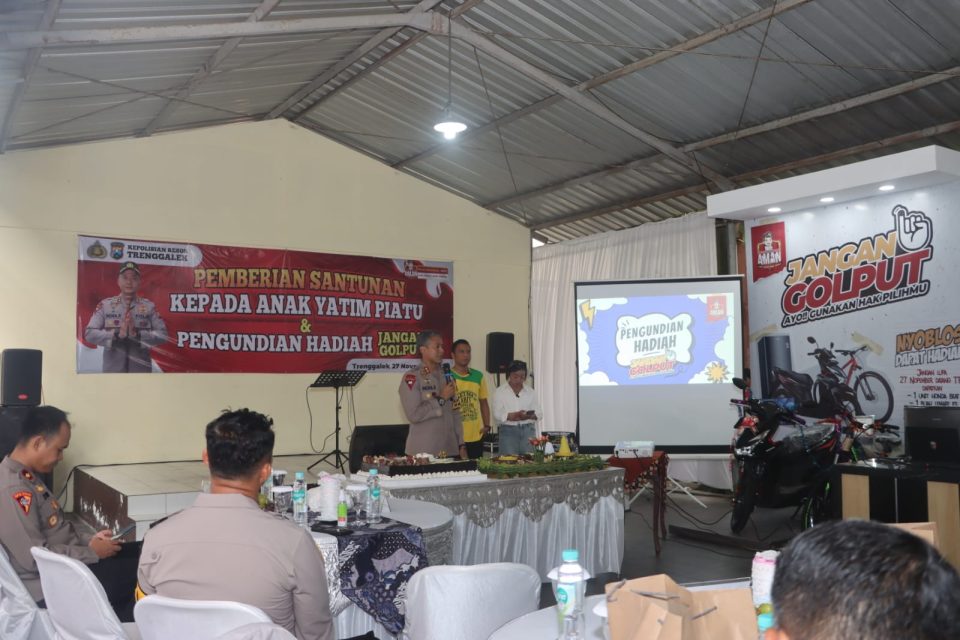 “Bagian dari ikhtiar kita untuk turut menyukseskan Pilkada serentak di Kabupaten Trenggalek, sekaligus sebagai wujud apresiasi dan terima kasih atas peran serta masyarakat yang dengan penuh kesadaran diri tidak Golput dan menyalurkan hak pilihnya.” Ucapnya.