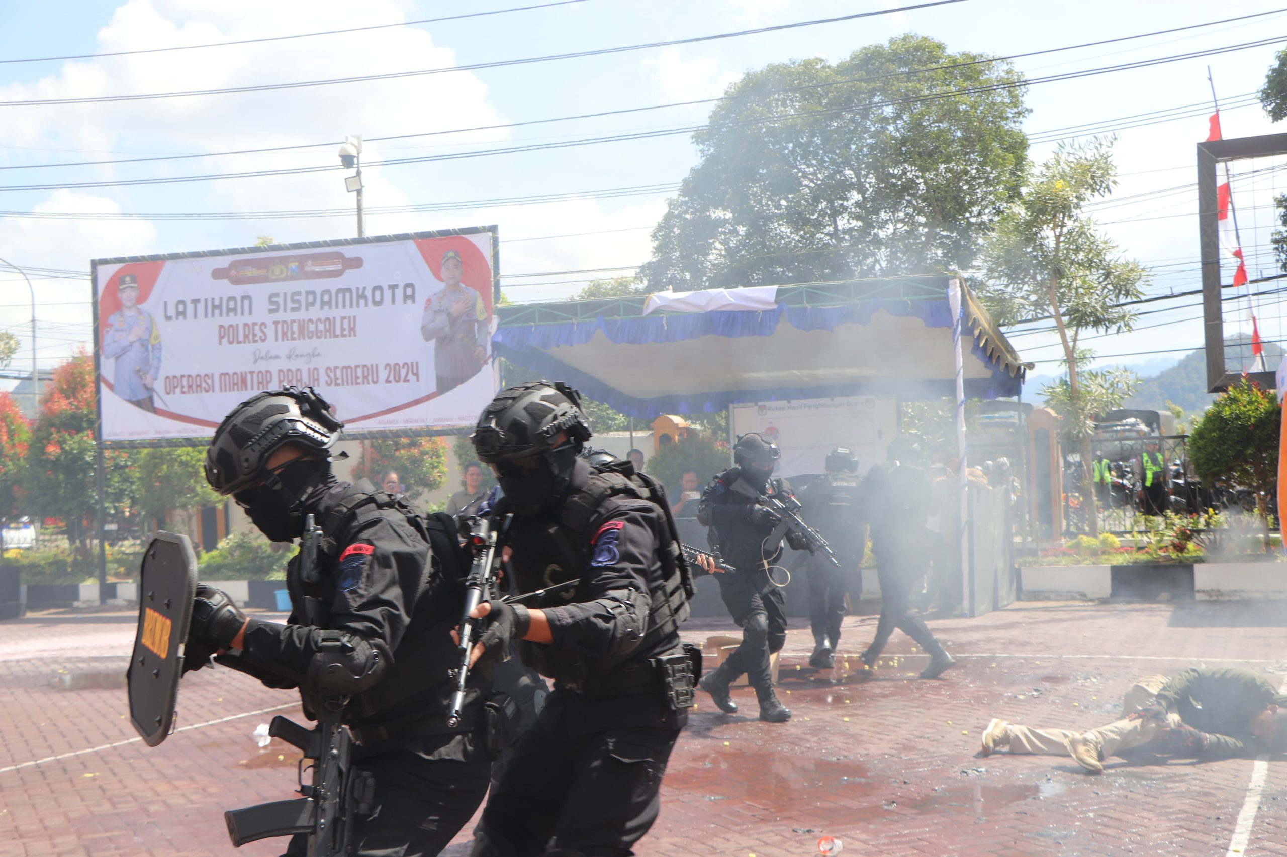 Kapolres Trenggalek AKBP Indra Ranu Dikarta, S.I.K., M.Si. mengatakan, simulasi Sispamkota ini merupakan bentuk kesiapan jajaran polres Trenggalek bersama TNI dan stakeholder terkait dalam rangka pengamanan Pilkada 2024 serentak.