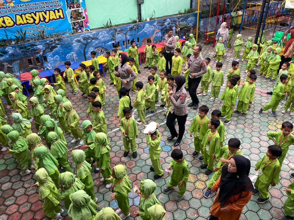 Polres Trenggalek – Tumbuh kembang anak nampaknya menjadi salah satu perhatian dari jajaran Satlantas Polres Trenggalek. Di sela-sela patroli keliling memastikan Kamtibselcarlantas kondusif, Unit Kamsel Satlantas Polres Trenggalek menyempatkan diri berkunjung ke salah satu sekolah taman kanak-kanak tepatnya di KB/TK Aisyiyah, Trenggalek. Selasa, (28/10).