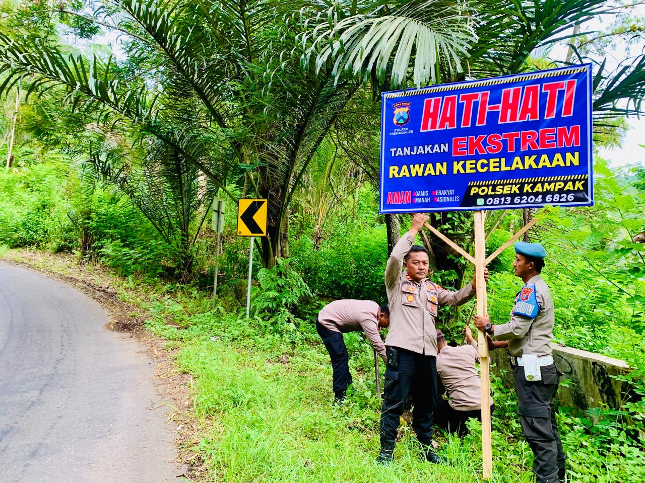 Tekan Potensi Kecelakaan, Polisi Pasang Tanda Peringatan di Jalur Kampak-Munjungan